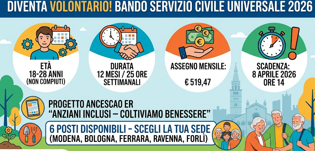 Gli aspiranti operatori volontari devono produrre domanda di partecipazione, indirizzata direttamente all’ente titolare del progetto prescelto, esclusivamente attraverso la piattaforma DOL raggiungibile tramite PC, tablet e smartphone all’indirizzo https://domandaonline.serviziocivile.it. Le domande di partecipazione devono essere presentate entro e non oltre le ore 14.00 dell’8 aprile 2026.