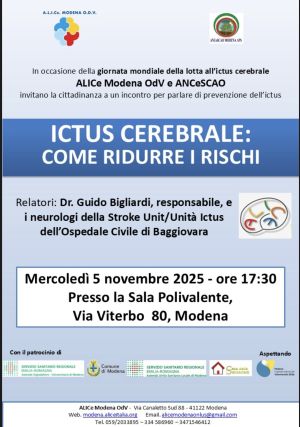 ALICe Modena ODV e ANCeSCAO Modena APS hanno organizzato un incontro dedicato alla salute del cervello e al riconoscimento precoce dei sintomi dell’ictus. Una sala piena, tante persone atten…