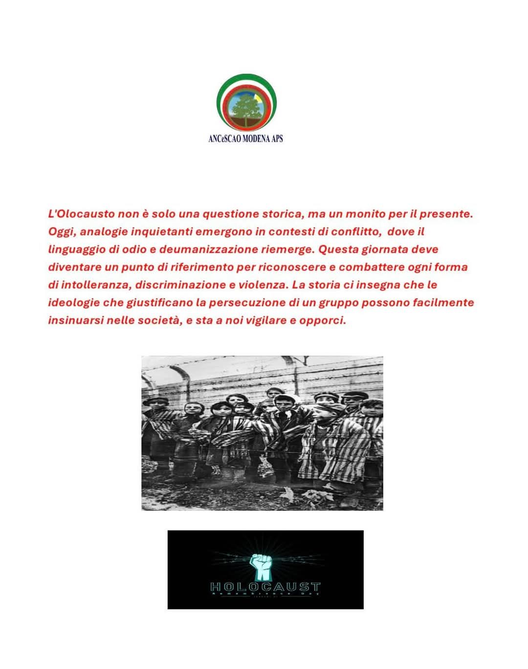 ANCeSCAO Modena APS chiede ai suoi associati di non dimenticare e di continuare a mantenere vivo il ricordo. Ricordare serve, insegnare e studiare sono un dovere civico, trasmette è un atto di civiltà e umanità.