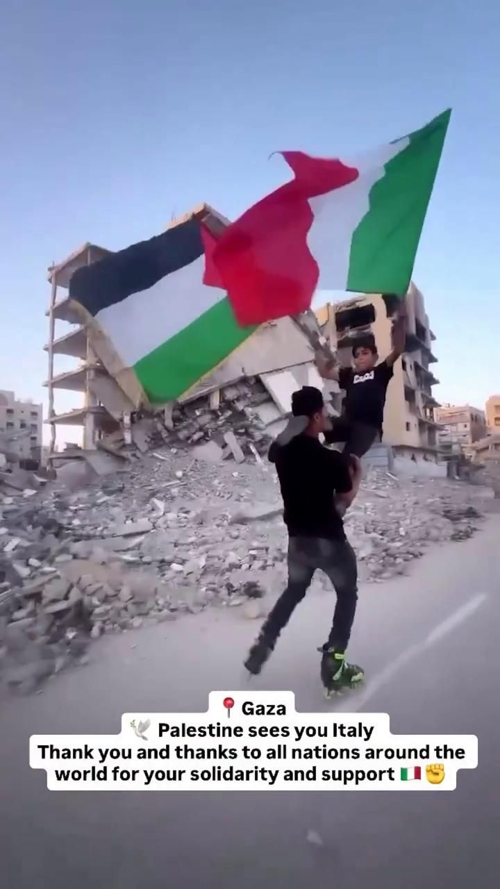 La forza di questa immagine, che ritrae un giovane con le bandiere palestinese e italiana, ci ha colpito profondamente. Per noi, scendere in piazza e far sentire la nostra voce è stato un gesto di vicinanza e solidarietà: un modo per non restare indifferenti e per ricordare che la pace, anche se fragile, è possibile.